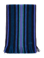 blue signature stripe pattern wool material fringed edges Striped scarf
