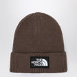 Brown recycled fabric The North Face hat, featuring a cuff with a patch with logo lettering on the front.
