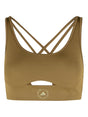 brown removable cups cross-back straps cutout detail front logo keyhole detail Logo gym bra