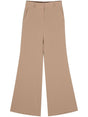 beige crepe texture belt loops at the waist two side slash pockets pressed crease rear elasticated waistband two rear jetted pockets wide leg concealed front button, hook and zip fastening Cady flared trousers Size and Fit - This piece fits true to size. We recommend you get your regular size. Model is 1,75m / 5ft 8in wearing size 40 (IT)