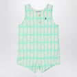 Sleeveless crew neck onesie by Bobo Choses in organic cotton aqua green, featuring buttons on the front, logo embroidery on the chest, and snap buttons on the crotch.