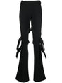 strap-detail flared trousers from AMBUSH featuring black, virgin wool, strap detailing, mid-rise, belted waist and flared. Double waist wool trousers Size and Fit - This piece fits true to size. We recommend you get your regular size. Model is 1,75m / 5ft 8in wearing size 40 (IT)