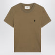 Bronze cotton crew neck T-shirt by Ami Paris, featuring short sleeves, Ami de Coeur embroidery on the chest, and a straight hem. Size and Fit - Model wears size S Model measurements: Height: 179 cm Chest: 83 cm Waist: 61 cm Hips: 88 cm