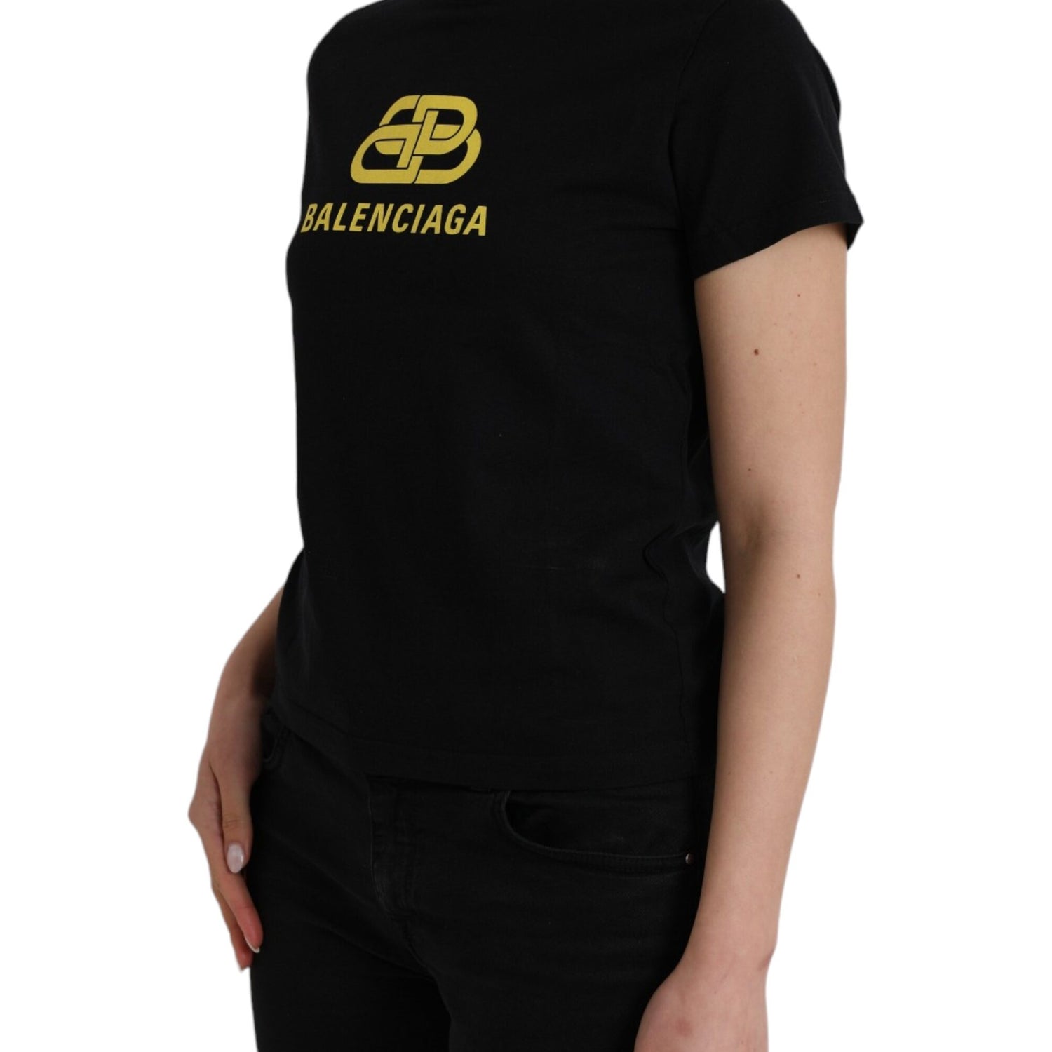 Balenciaga Black Cotton Logo Print Crew Neck Short Sleeves T-shirt