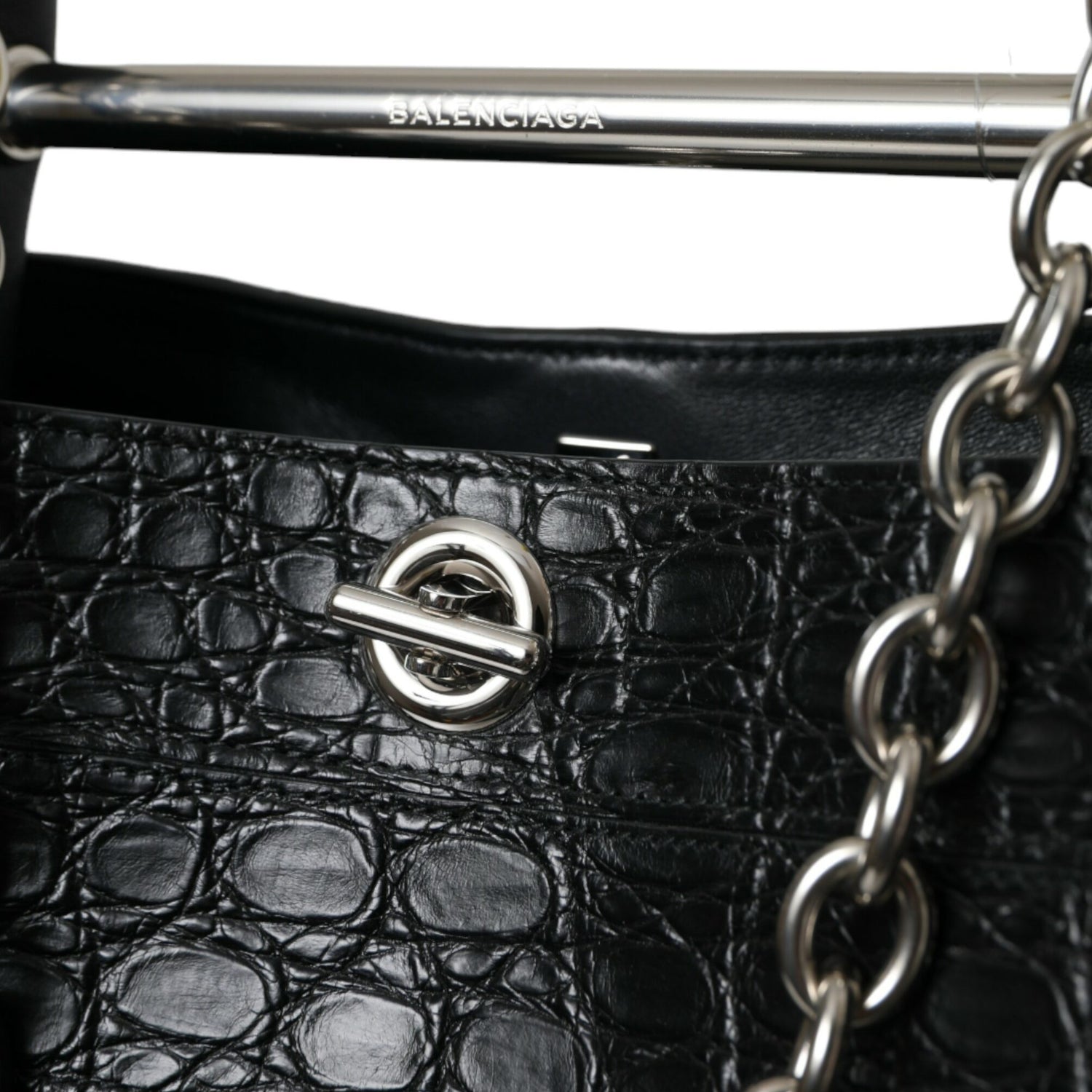 Absolutely stunning, 100% Authentic, brand new with tags BALENCIAGA black crocodile leather maxi bucket bag.