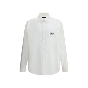 Balenciaga’s oversized cotton Shirt features a contemporary and striking design. It features a front button closure, a classic collar and an asymmetrical hem that adds dynamism to the silhouette. A small patch pocket on the front, embellished with the embroidered logo, gives a distinctive and refined detail, perfect for those who love a modern and bold style.
