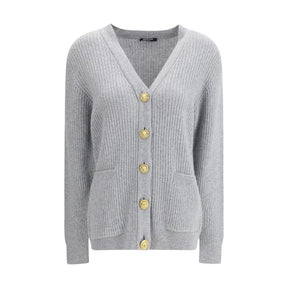 The long cashmere Cardigan by Balmain represents the perfect fusion of comfort and sophistication, typical of the brand. The soft, elongated line is defined by the deep V-neckline and ribbed edges that emphasize its structure with balance and fluidity. Golden lion-head buttons, the iconic symbol of the house, add a precious accent that contrasts with the simplicity of the design. Patch pockets at the sides complete a garment designed to wrap with relaxed elegance and contemporary spirit.