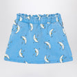 Light blue organic cotton skirt from Bobo Choses featuring prints with half moons surrounded by all over stars, an elasticated waistband and two side welt pockets.