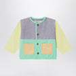 Bobo Choses round-neck jacket in cotton with a colour-block design, featuring long sleeves, front closure with snap buttons, and two applied pockets on the front, one of which has logo lettering embroidery.
