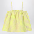 Top by Bobo Choses in cotton blend with yellow Vichy pattern, featuring thin straps with bows, logo embroidery on the front, elasticized neckline, and flared design.