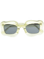 oversized curved-frame sunglasses from Bonsai featuring green tea, transparent design, oversize frame, curved corners, tinted lenses, logo print at the arm and straight arms. These glasses come with a protective case.. Happy sunglasses Size and Fit - Arm Length: 14.5 Centimetres. Bridge Width: 2.7 Centimetres. Lens Diameter: 4.8 Centimetres. Total Width: 13.5 Centimetres.