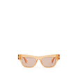 Bottega Veneta Orange Recycled Acetate Sunglasses. Transparent crystal effect frame, orange lens, gold details on the temples