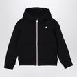 Black lightweight scuba hoodie from K-Way featuring long sleeves, chest logo, front zip fastening, two welt pockets on the front and ribbed edges.