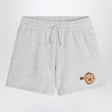 Shorts by Mini Rodini in organic cotton grey, featuring an elasticated waistband with drawstring, two side welt pockets, and Flundra print on the front.