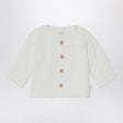 Teddy & Minou round-neck jacket in white cotton, featuring long sleeves, logo tag on the side, and front buttoning.
