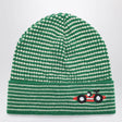 Bobo Choses Green/white striped Race Car beanie - 48 is backordered and will ship as soon as it is back in stock.