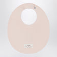 Teddy & Minou bib in pink cotton gauze, featuring a snap button closure and logo patch.