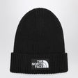 The North Face hat made of black recycled fabric, featuring a cuff with a patch with logo lettering on the front.