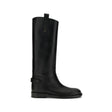 Leather high Boots by Burberry combine essential lines and iconic details in a sleek, functional design. Featuring a flat sole and round toe, they offer a comfortable fit for everyday wear. There is a decorative buckle at the back, while the side logo pull tab adds a distinctive touch that echoes the brand’s identity.
