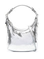 Cosmo metallic top-handle bag from BY FAR featuring silver-tone, goatskin, metallic effect, textured finish, silver-tone hardware, single flat top handle, top zip fastening, adjustable detachable shoulder strap, internal logo patch and cotton lining. Cosmo metallic leather handbag Size and Fit - Width 6,3 in / 16 cm Height 5,12 in / 13 cm Depth 1,97 in / 5 cm Handle 5,51 in / 14 cm Strap 24,41 in / 62 cm