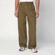 Wide trousers by C.P. Company in dark green/beige cotton, characterized by a front closure with zip and button, two back welt pockets with button, small logo patch on the back, adjustable ankles, belt loops, two side welt pockets, and detail with branded Lens. Size and Fit - Model wears size 48 IT Model measurements: Height: 189 cm Chest: 104 cm Waist: 78 cm Hips: 95 cm