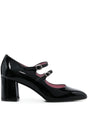 black calf leather patent finish double-strap design buckle fastening mid block heel Alice patent leather pumps Size and Fit - The model has a narrow fit; we recommend purchasing one size down.