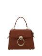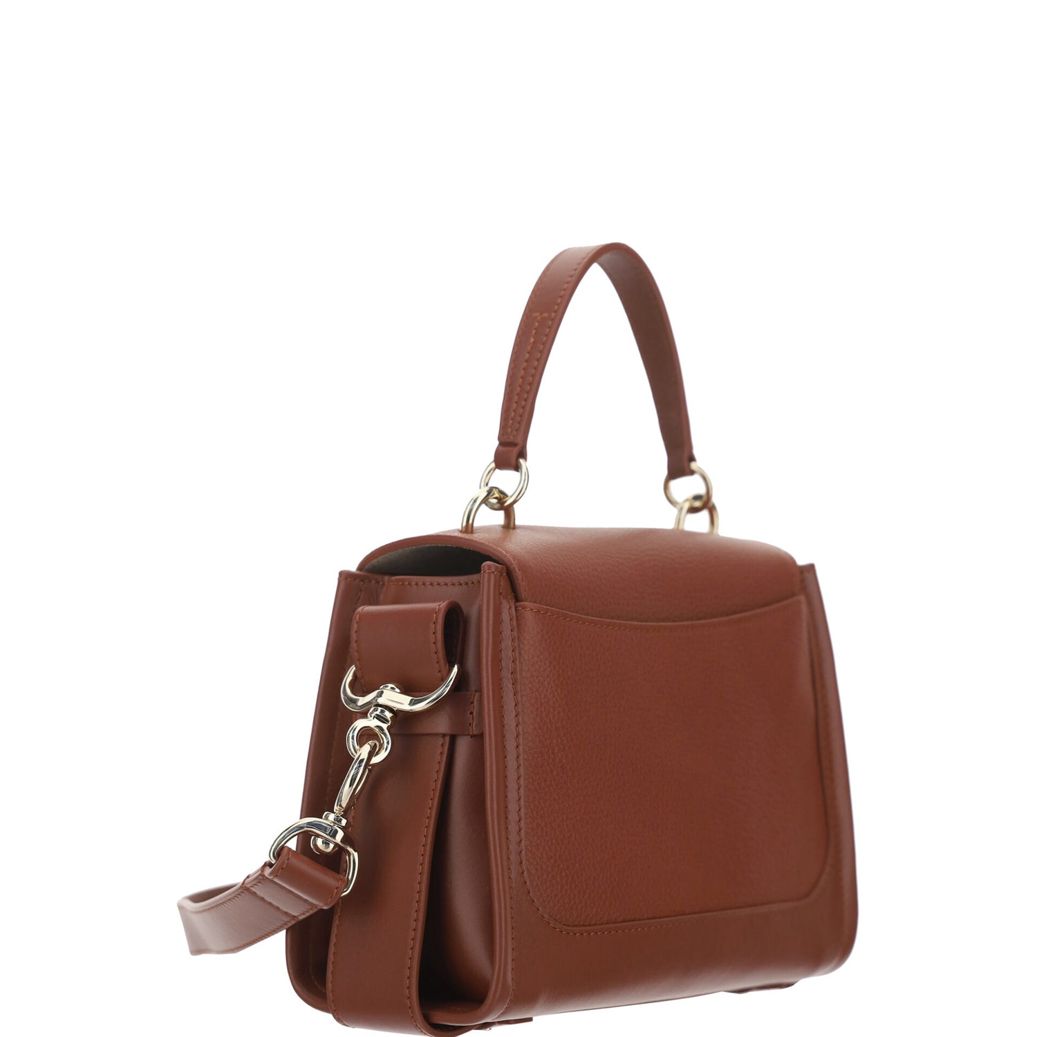 Details: Calfskin Tess Handbag by Chloé, pebble structure, metal ring details, gold-coloured hardware on the front, hinged door with magnetic clasp, removable and adjustable leather shoulder strap, single rounded handle, sachet pocket on the front, sachet pocket on the back, inner pocket with zip and integral lining.