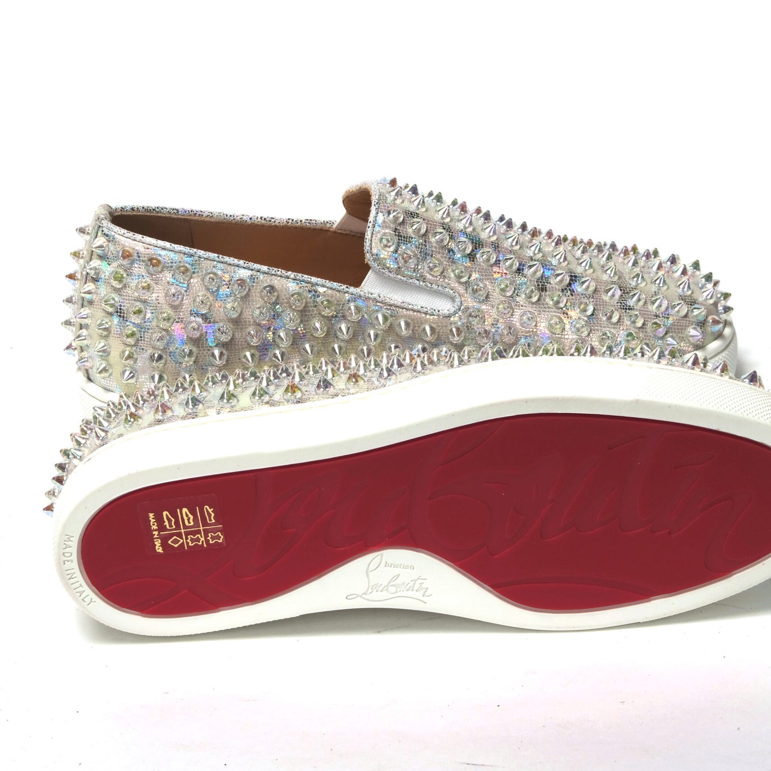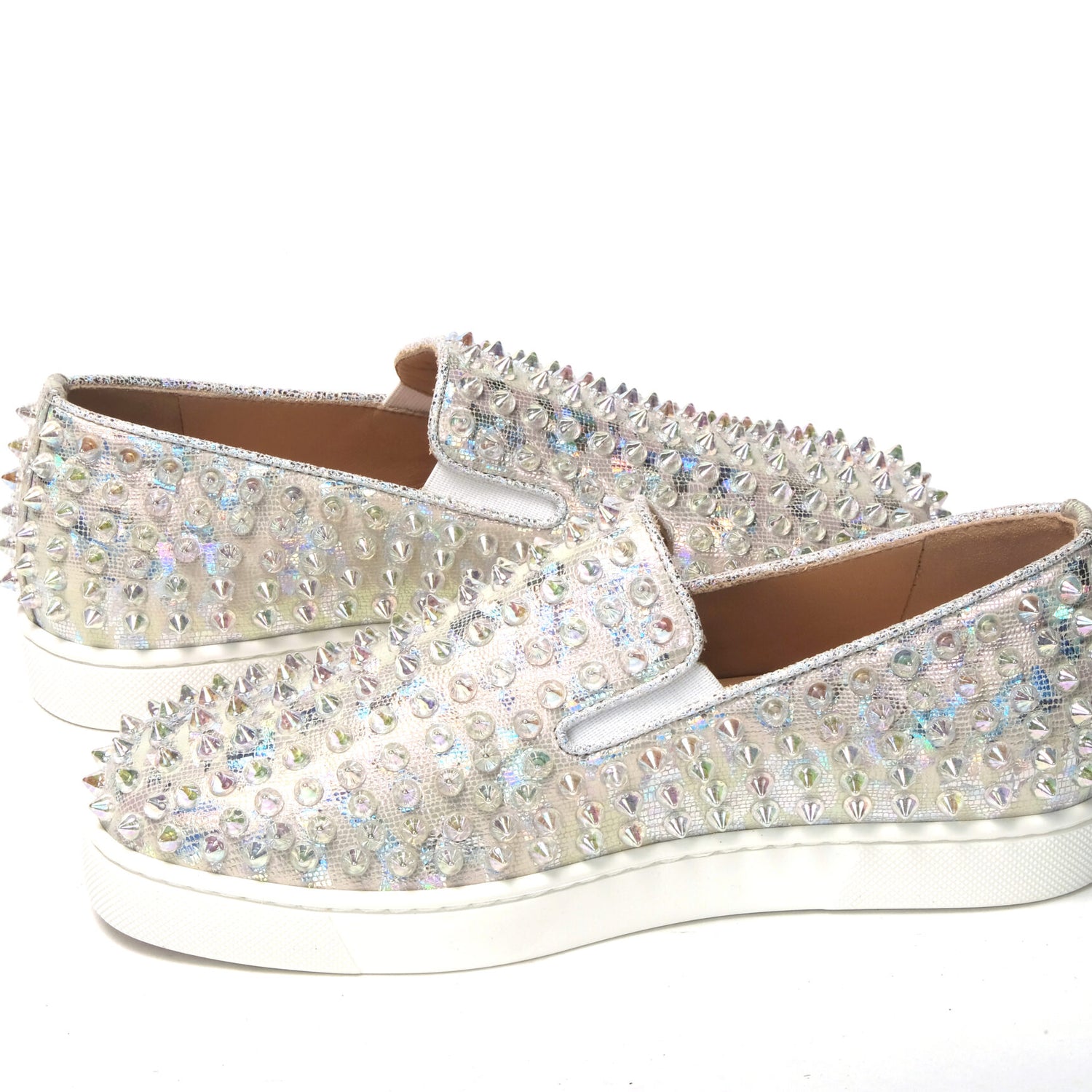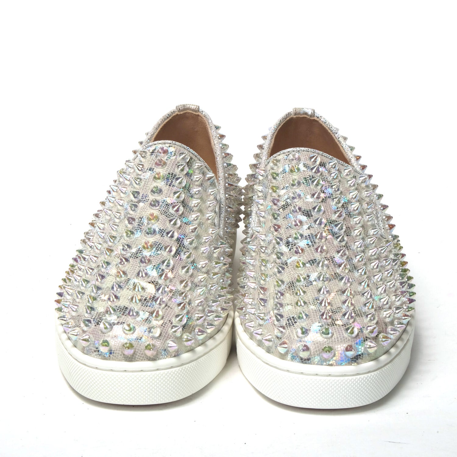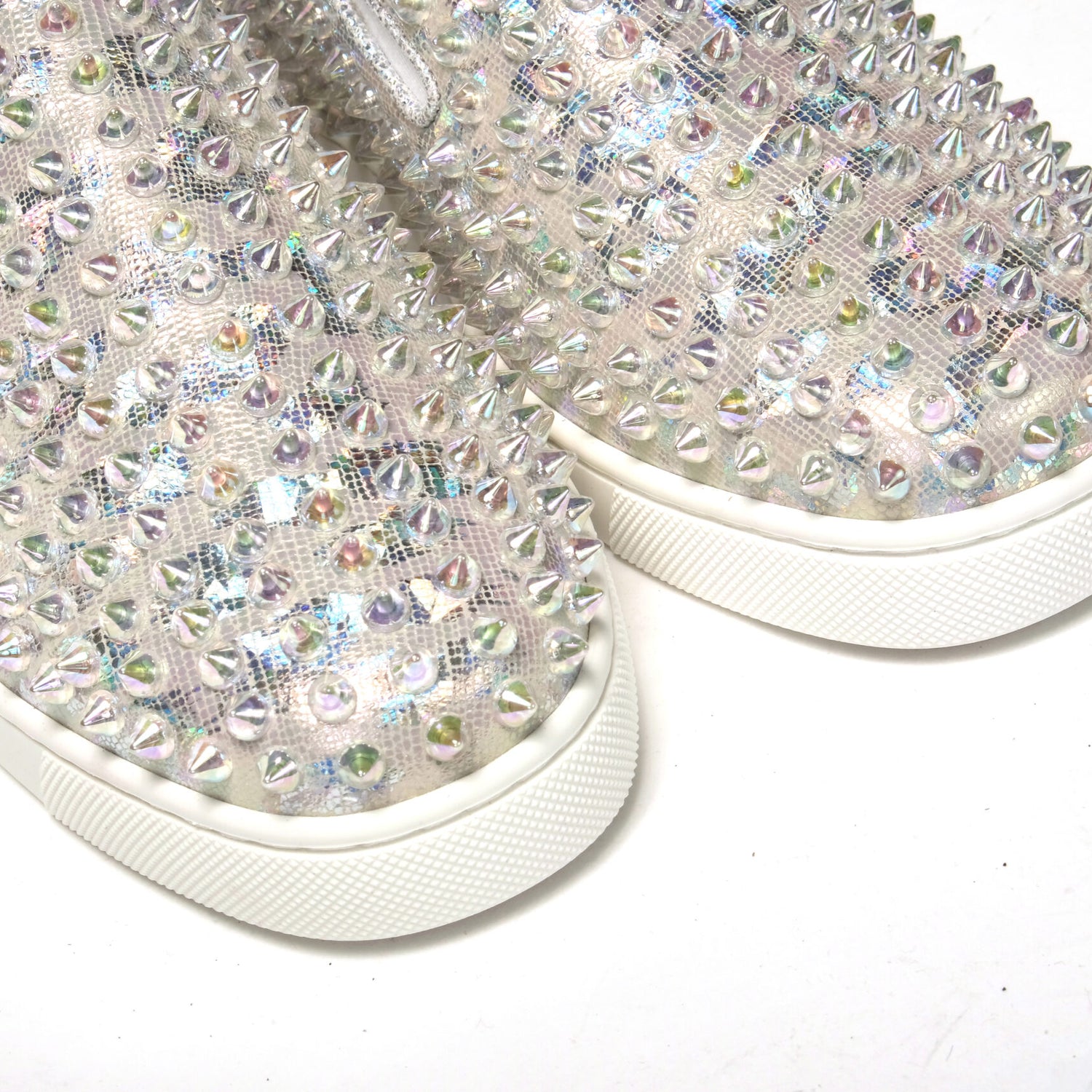 Material: Embellished Leather Sneaker With Spike Clear Crystals