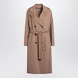 Double-breasted coat by ''S Max Mara in beige virgin wool, characterized by a matching belt, straight line, classic wide lapels, long sleeves, button closure, two side welt pockets, and a back vent. Size and Fit - Model wears size 40 IT Model measurements: Height: 179 cm Chest: 82 cm Waist: 65 cm Hips: 90 cm