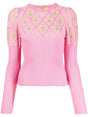 long-sleeve knitted top from CORMIO featuring flamingo pink, cotton blend, knitted construction, stretch-design, floral embroidery, crew neck, long sleeves and straight hem. Embroidered glitter-cotton t-shirt Size and Fit - This piece fits true to size. We recommend you get your regular size. Model is 1,75m / 5ft 8in wearing size 40 (IT)