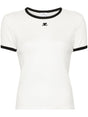white/black cotton logo embellishment contrasting trim short sleeves round neck straight hem Cotton t-shirt