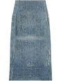ocean blue side zip fastening distressed effect high-waisted long length Denim midi skirt Size and Fit - This piece fits true to size. We recommend you get your regular size. Model is 1,75m / 5ft 8in wearing size S