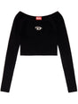 black FSC viscose silver-tone logo plaque cut-out detailing boat neck long sleeves straight hem Conscious: This product contains cellulosic-based material sourced from sustainably managed forests. Learn more about what makes a product Conscious on our Conscious Criteria page Oval-D top Size and Fit - This piece fits true to size. We recommend you get your regular size. Model is 1,75m / 5ft 8in wearing size S