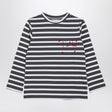 Grey and white striped cotton crew-neck sweater from Douuod featuring long sleeves, chest embroidery and straight hem.