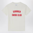 Ivory cotton crew neck T-shirt by Douuod, featuring short sleeves, contrasting print on the front, and logo lettering on the back.