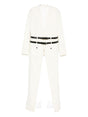 beige double belt button detail V-neck long sleeves Belted double-breasted coat
