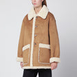 Dunst shearling-effect faux-leather coat in camel, featuring button closure, long sleeves, two front patch pockets, shearling-effect collar and lining in contrast, and applied trims. Size and Fit - Model wears size S Model measurements: Height: 182 cm Chest: 79 cm Waist: 62 cm Hips: 90 cm