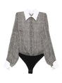 Just a reminder that this piece must be tried on over your own garments. Silk shirt bodysuit