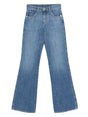 cerulean blue concealed fly and button fastening belt loops classic five pockets gold-tone logo plaque Denim cotton jeans Size and Fit - This piece fits true to size. We recommend you get your regular size. Model is 1,75m / 5ft 8in wearing size 27 (WAIST CM)