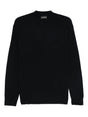 black ribbed knit crew neck long sleeves logo detail straight hem Wool crewneck jumper