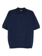 navy blue short sleeves zip detailing knitted construction straight hem polo collar Wool blend polo shirt