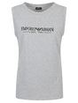 Gray top, round neck, EMPORIO ARMANI logo, straight hem. Logo cotton tank top Size and Fit - This piece fits true to size. We recommend you get your regular size. Model is 1,75m / 5ft 8in wearing size S