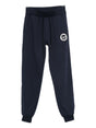 blue elasticated drawstring waistband diagonal pockets cuffed hem