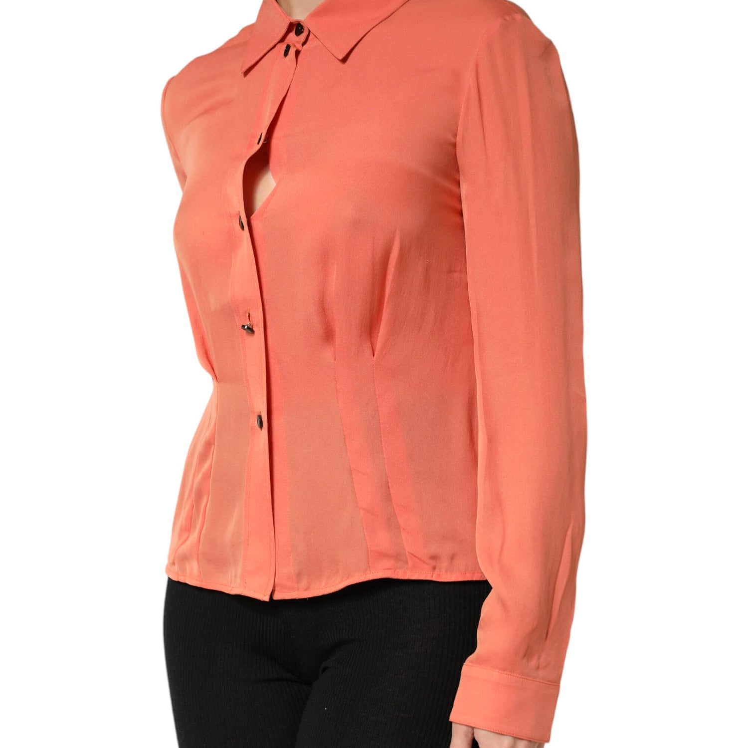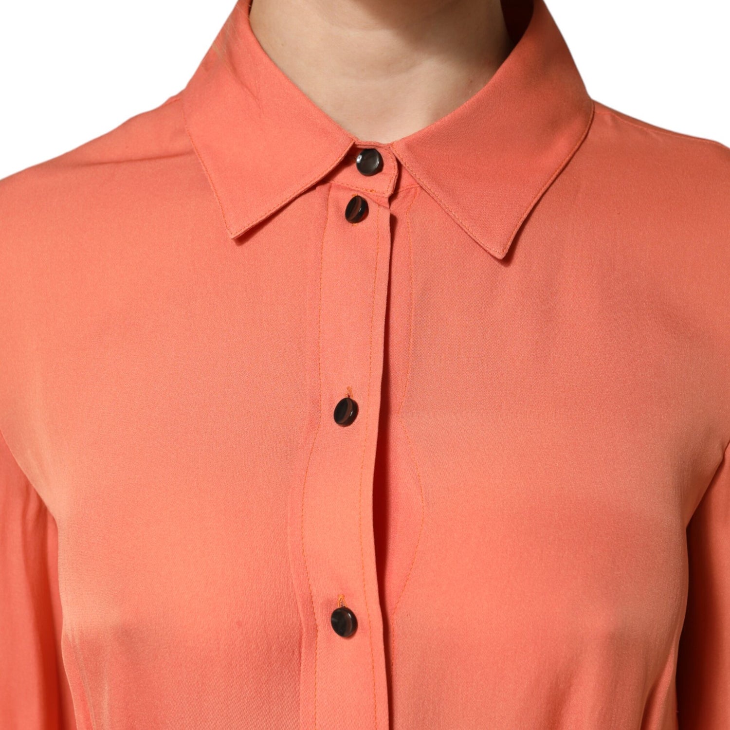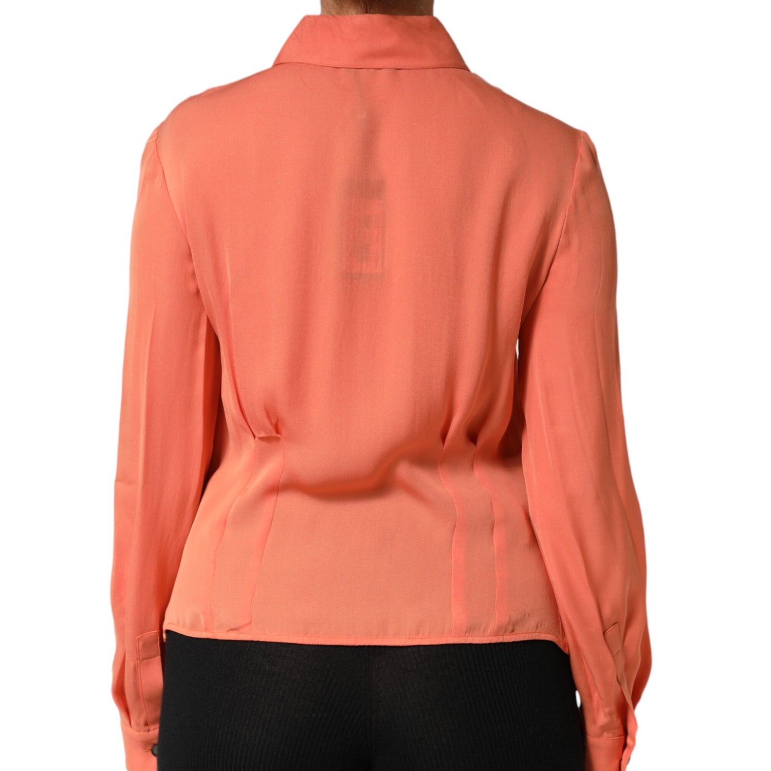blouse brings refined sophistication with a bold, modern touch. Crafted in a vibrant orange hue, it features a classic collared neckline and button-down front for a polished silhouette. Perfect for adding a pop of color to both professional and chic casual ensembles.