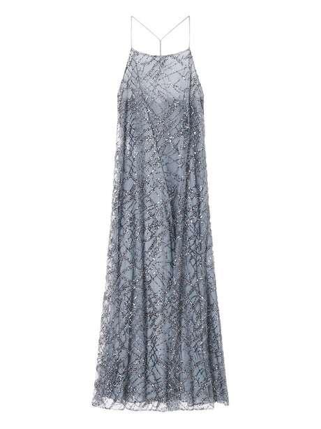 Emporio Armani Long tulle dress with all-over micro sequin and jet embroidery