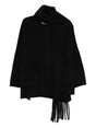 black front pockets fringe detail Scarfed cape