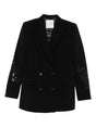 black sequin embellishment front button fastening long sleeves side flap pockets Embroidered double-breasted jacket