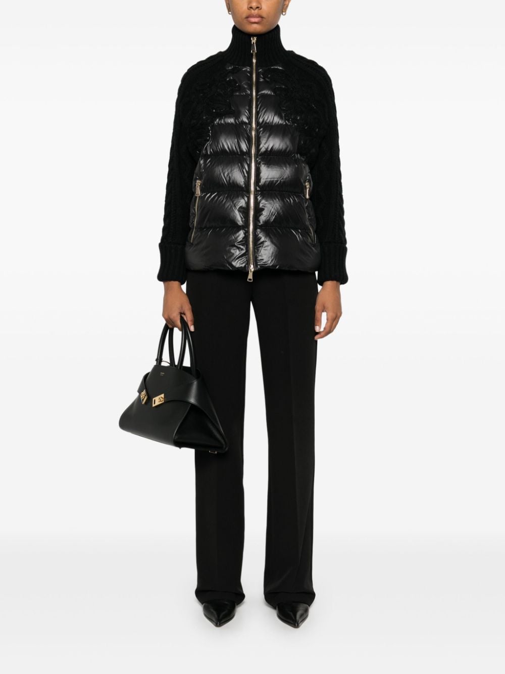 black stretch-design cady texture logo waistband two side inset pockets pressed crease full-length straight leg Slim trousers Size and Fit - This piece fits true to size. We recommend you get your regular size. Model is 1,75m / 5ft 8in wearing size 40 (IT)