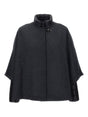 black wool high neck three-quarter sleeves welt pockets Reversible cape