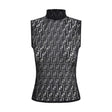 The FF lace Top features a sleeveless design with a high collar and a fitted silhouette. Made of black jersey lace with an all-over iconic FF motif, the piece creates a sophisticated see-through effect. The unlined construction enhances the lightness and boldness of the design, making it a distinctive and statement-making garment.